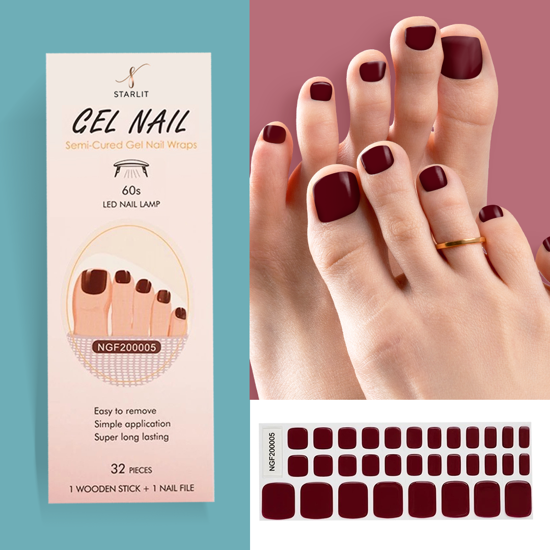 Black Cherry Merlot Semi-Cured Gel Pedicure Wrap