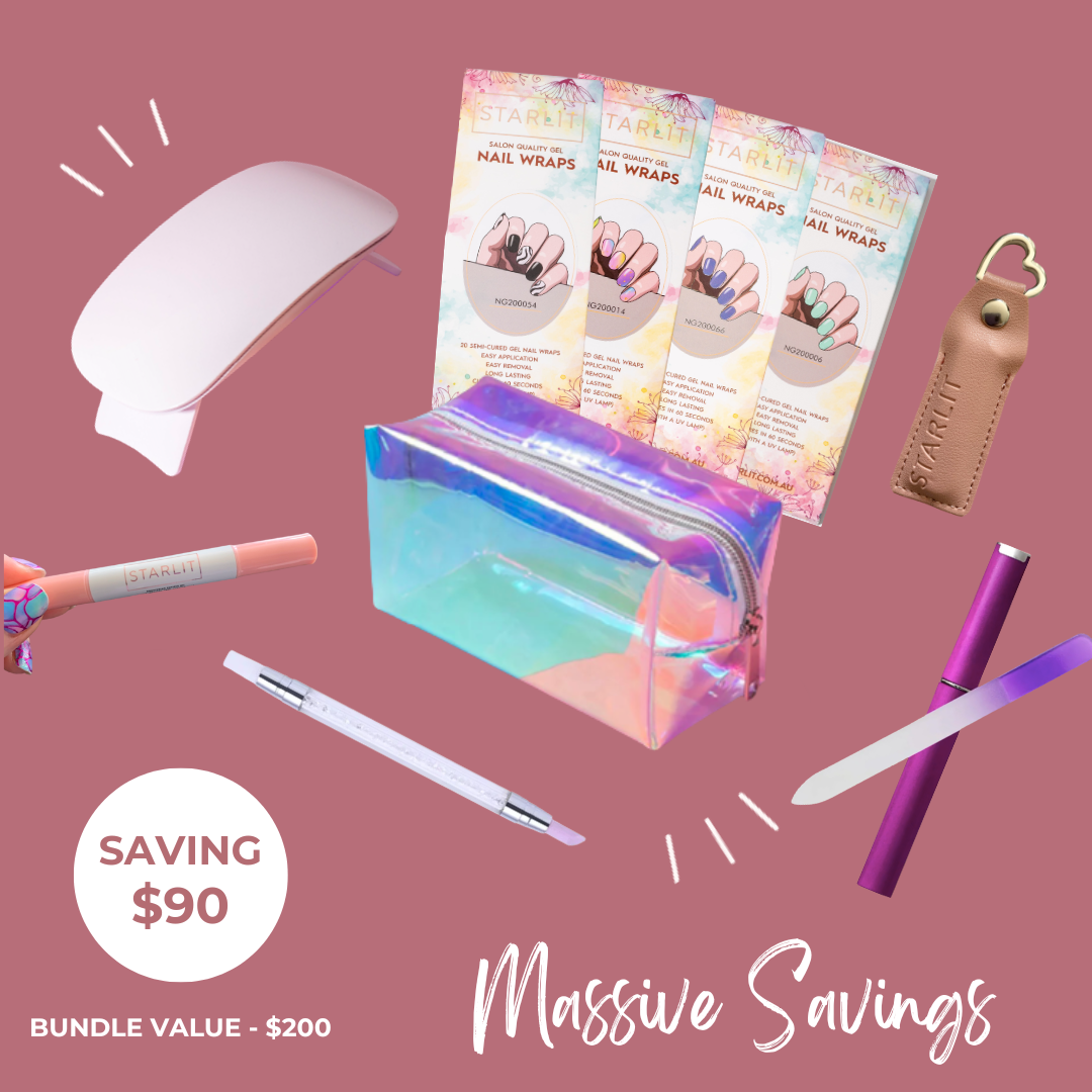 - Cure – Cure in just 60 seconds under a UV/LED lamp to harden your Starlit Gels. This will ensure your pedicure is durable and long lasting. (Get your UV Lamp here)
