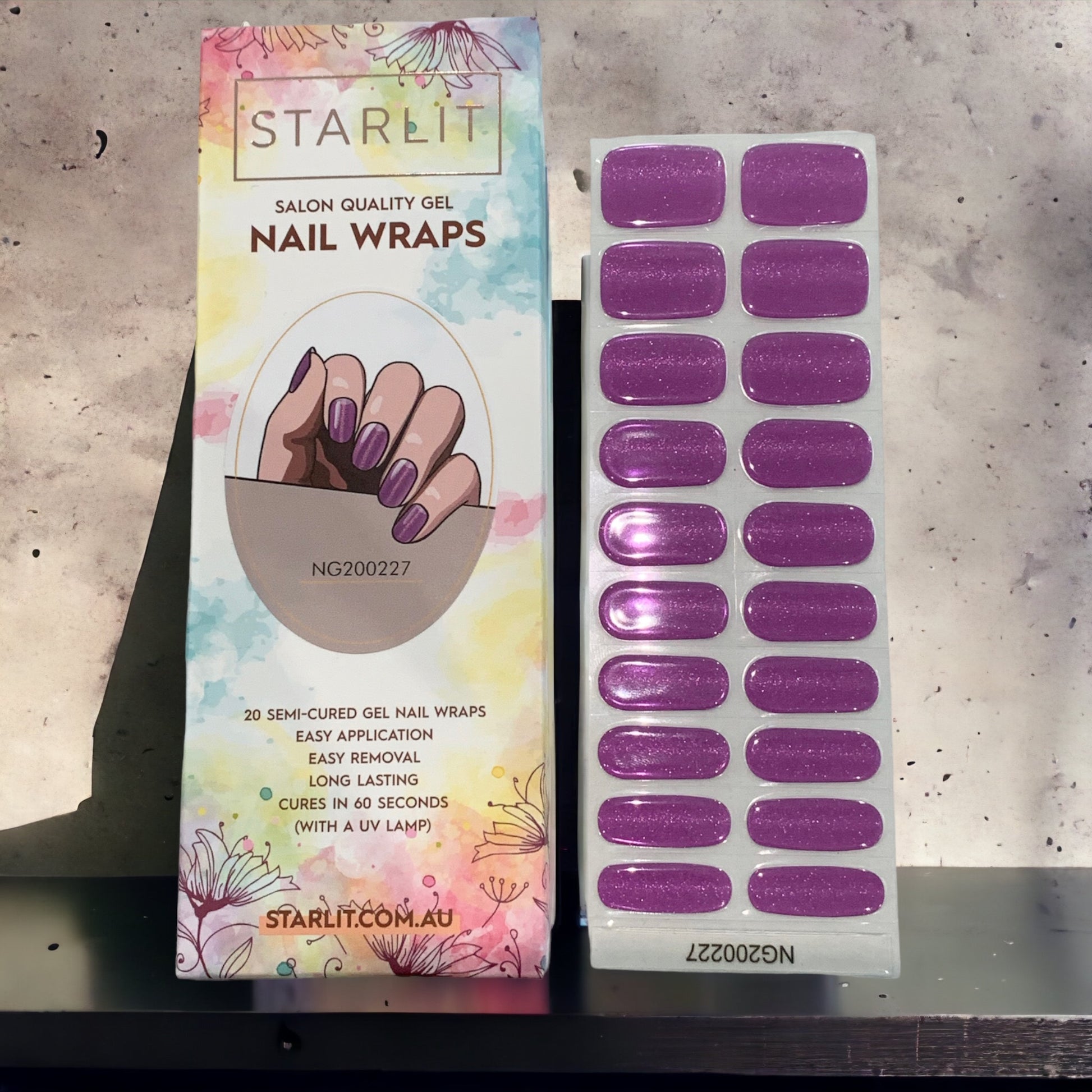 SEMI-CURED is the latest technology in the nail industry. STARLIT GELS are real liquid gel polish, semi cured to 60%, in nail wrap form. They are soft and flexible and will easily shape to your nails (even super curvy ones!)
