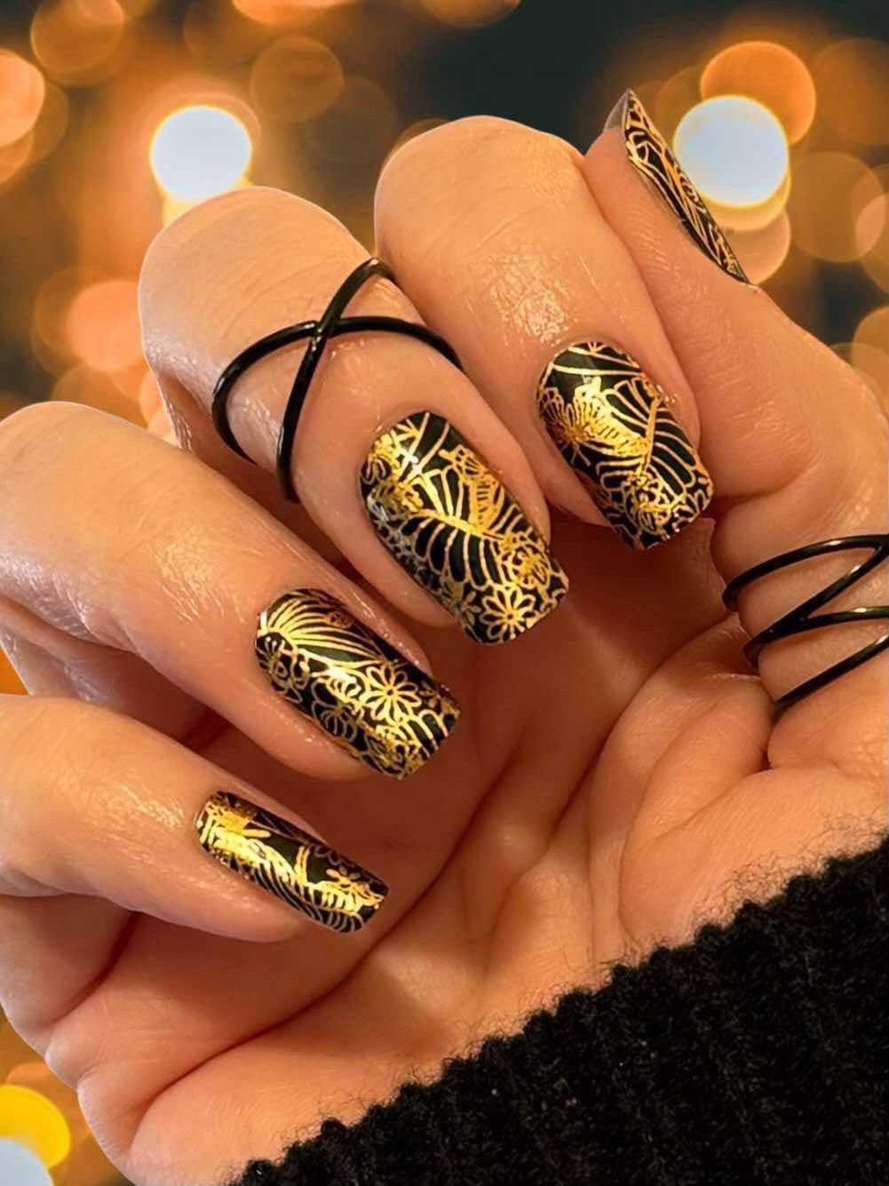 Experience the allure of intricate gold lace delicately woven into enchanting patterns of flowers, leaves and butterflies.