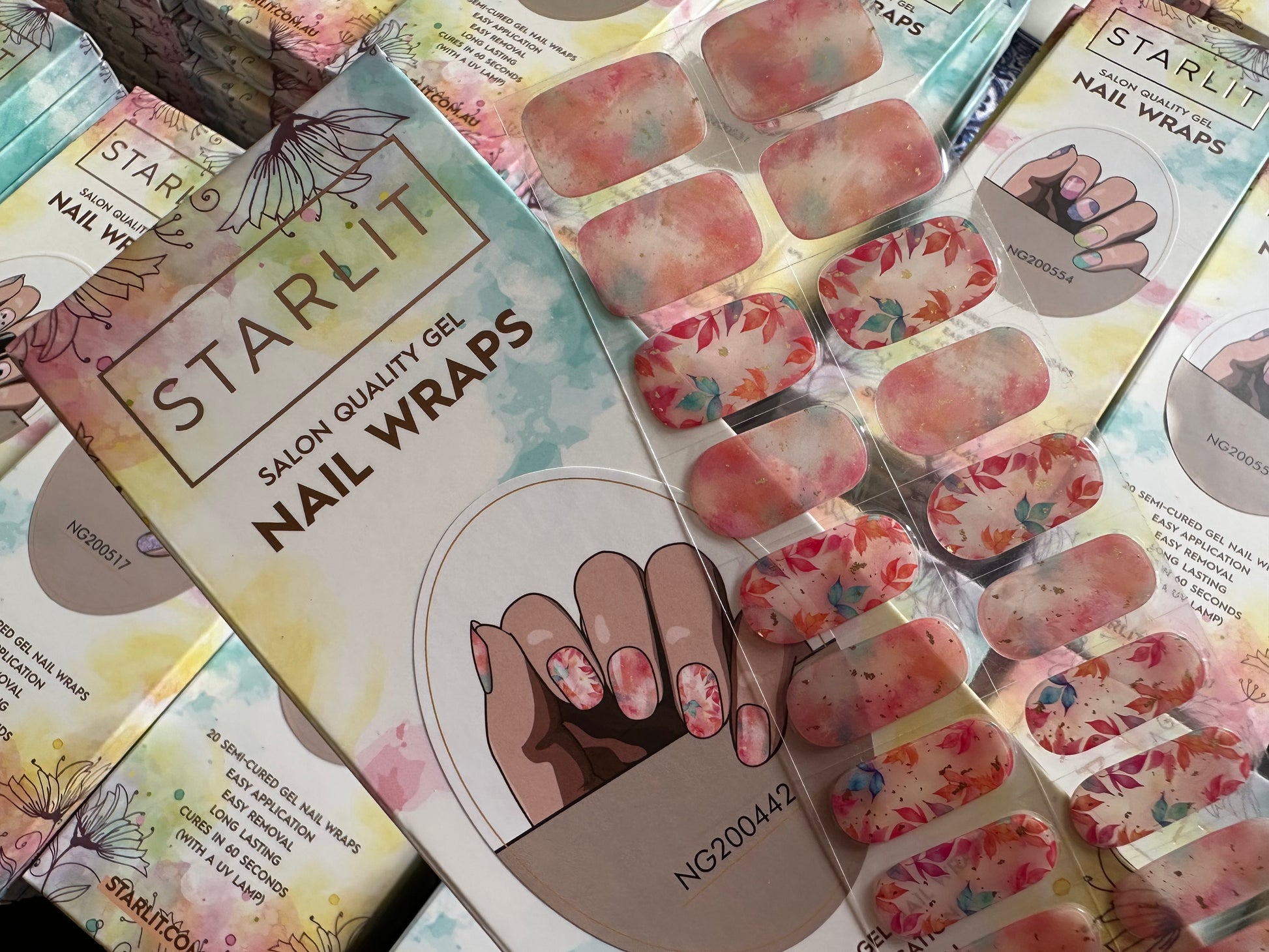 SEMI-CURED is the latest technology in the nail industry. STARLIT GELS are real liquid gel polish, semi cured to 60%, in nail wrap form. They are soft and flexible and will easily shape to your nails (even super curvy ones!)