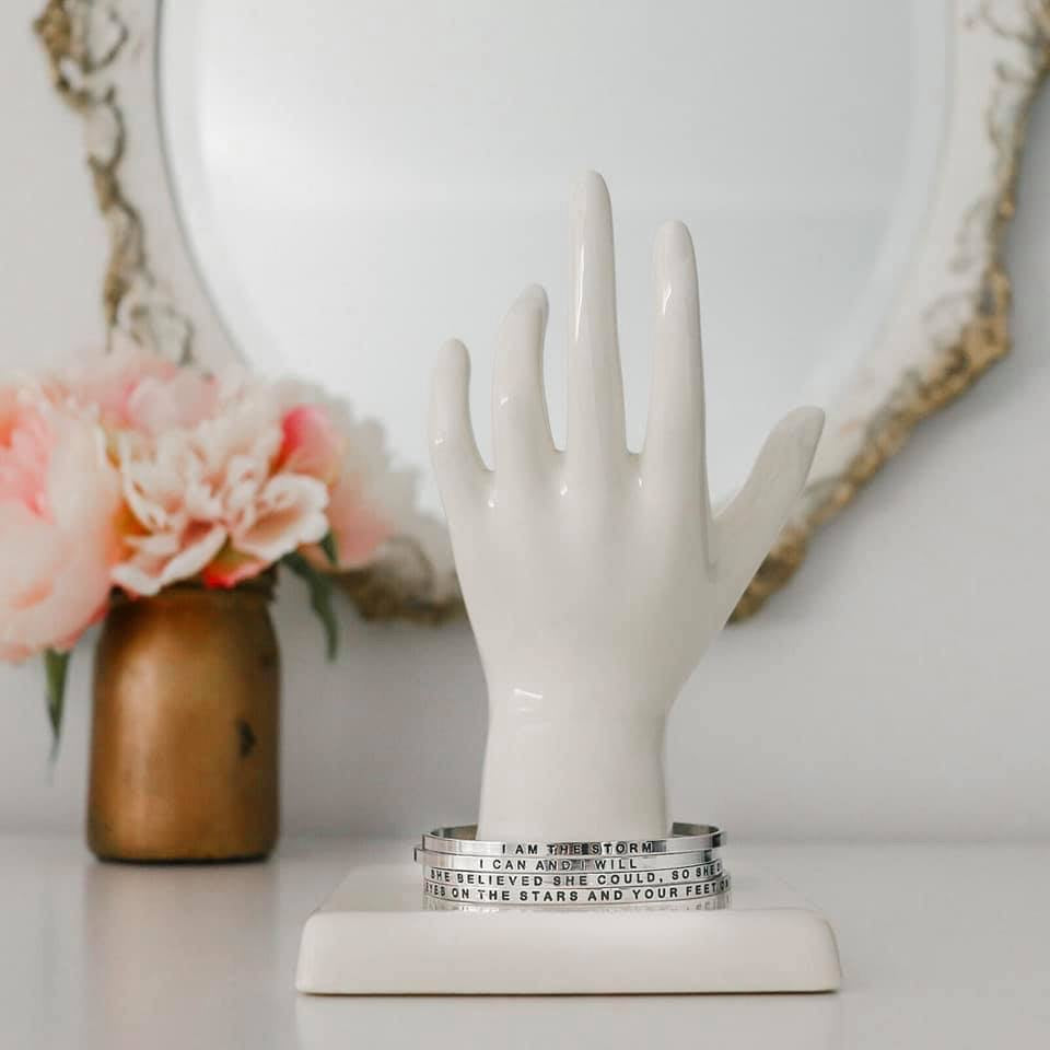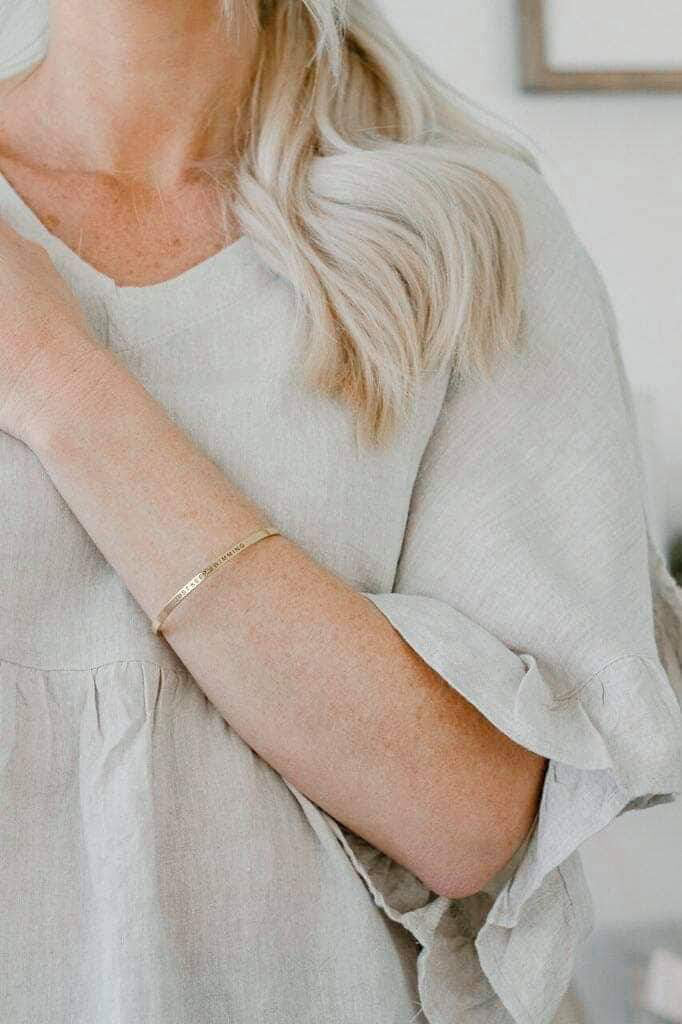 Starlit Bands are simple, elegant bracelets with an uplifting, motivating or inspiring message, reminding you to stay positive, optimistic, grateful, to live your best life or just to keep moving forward. Featuring a cuff design they are easy to put on and take off. One size fits most wrist sizes and they are fully adjustable.