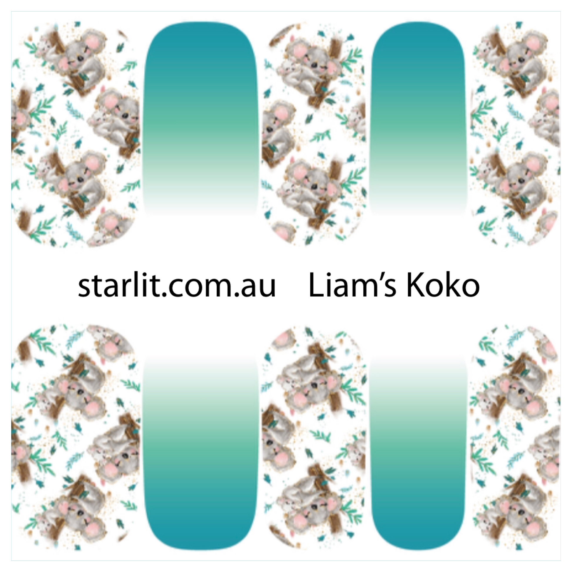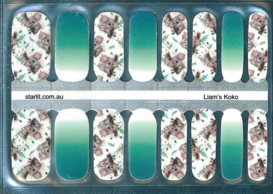 Liam's Koko is for all the Koala lovers out there (especially Liam!) Sweet Mama and Baby Koalas hanging out together with ombré green accents to represent the Eucalyptus trees.