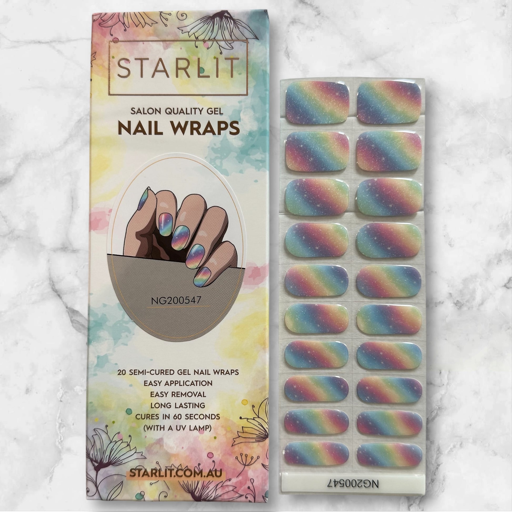 SEMI-CURED is the latest technology in the nail industry. STARLIT GELS are real liquid gel polish, semi cured to 60%, in nail wrap form. They are soft and flexible and will easily shape to your nails (even super curvy ones!)